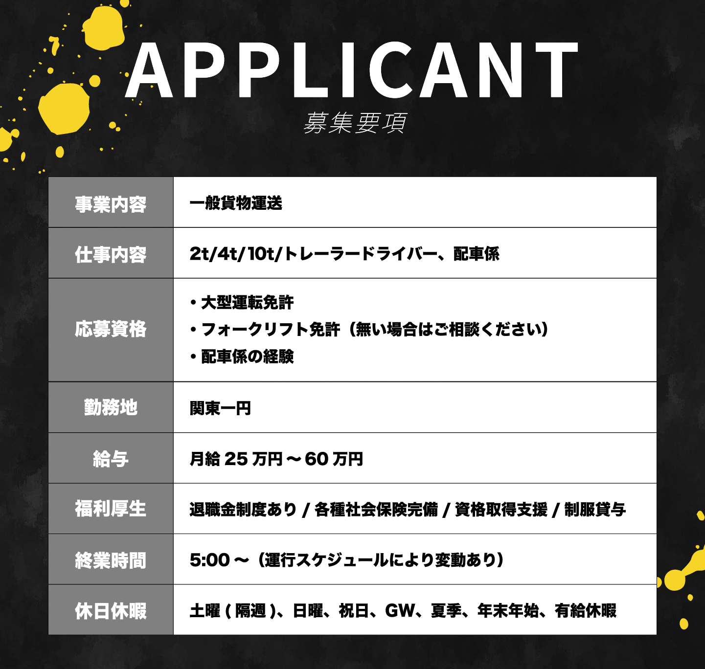 | 連絡先 | (杉戸営業所) 0480-38-9300 |